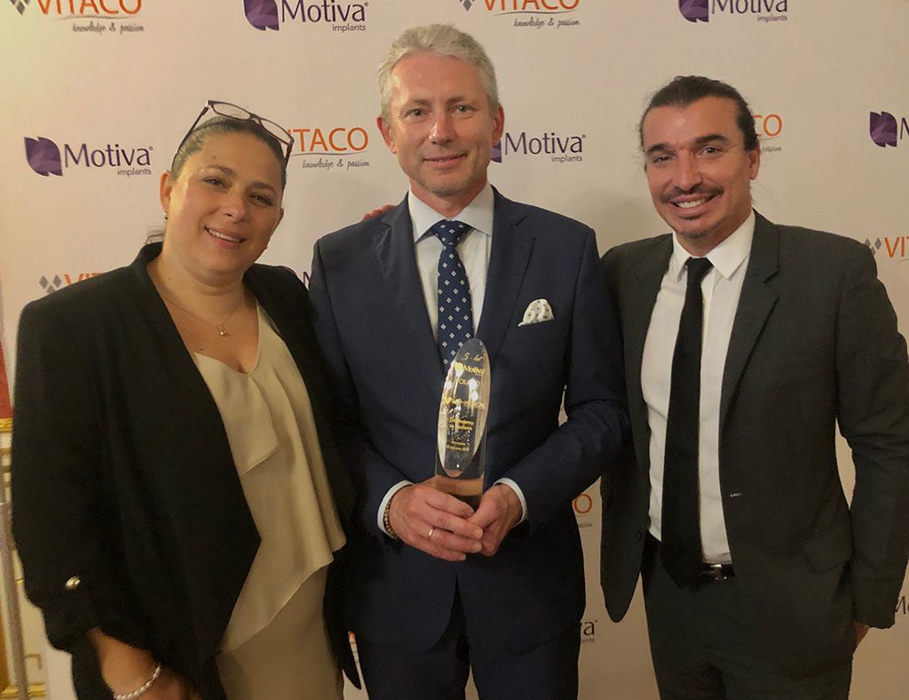 Dr Sandelewski został zaproszony do Warszawy, gdzie 10 czerwca 2019 r. odbyło się uroczyste spotkanie. Spotkanie to zorganizowane zostało przez firmę Vitaco, która jest dystrybutorem implantów Motiva w Polsce. Dr Sandelewski jako jeden z pięciu polskich chirurgów zaufał implantom firmy Motiva czego do dzisiaj nie żałuje. Tą przepiękną statuetkę wręczyli dr Sandelewskiemu prezesi firm Vitaco – Jowita Bernaś oraz Motiva – Juan Jose Chacon Quiros. Podczas uroczystej kolacji na Zamku Królewskim w Warszawie dr Sandelewski spotkał się ze swoimi kolegami chirurgami.